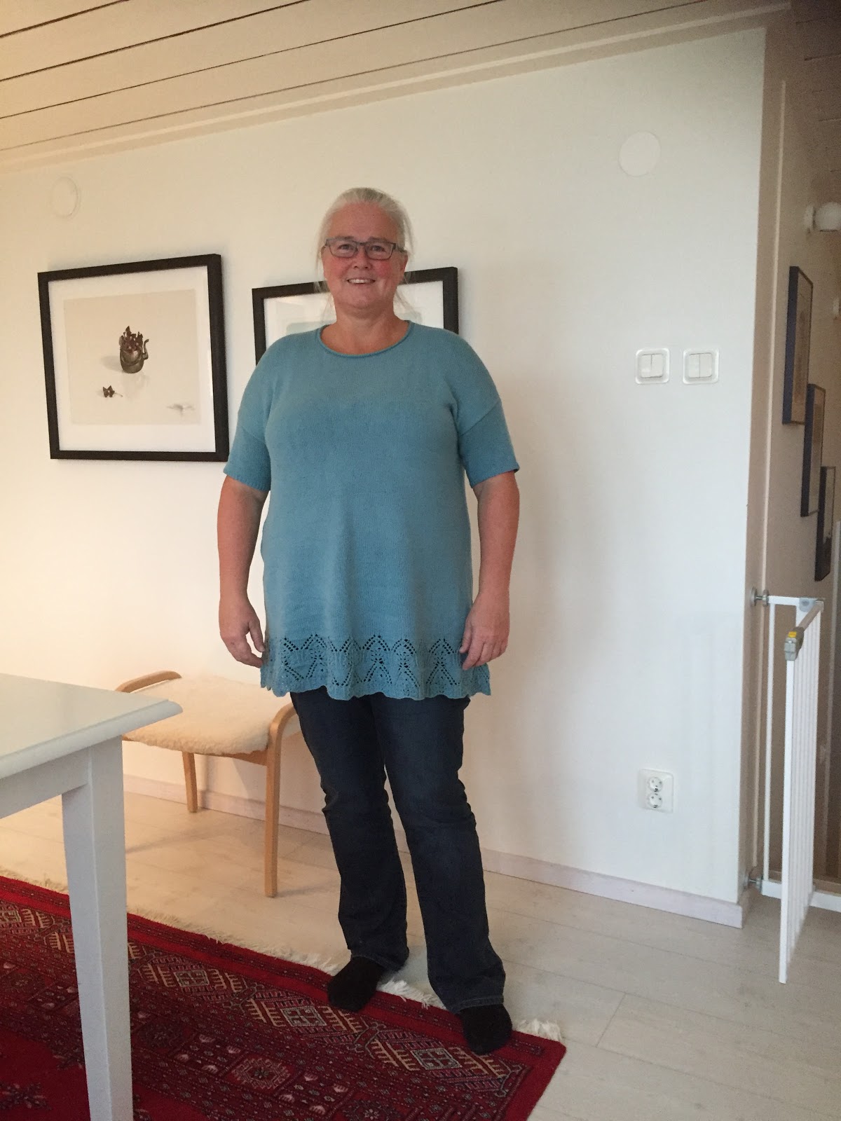 TegnaSweater, a bit longer than the original, the yarn is Cash cotton from Garnudsalg.